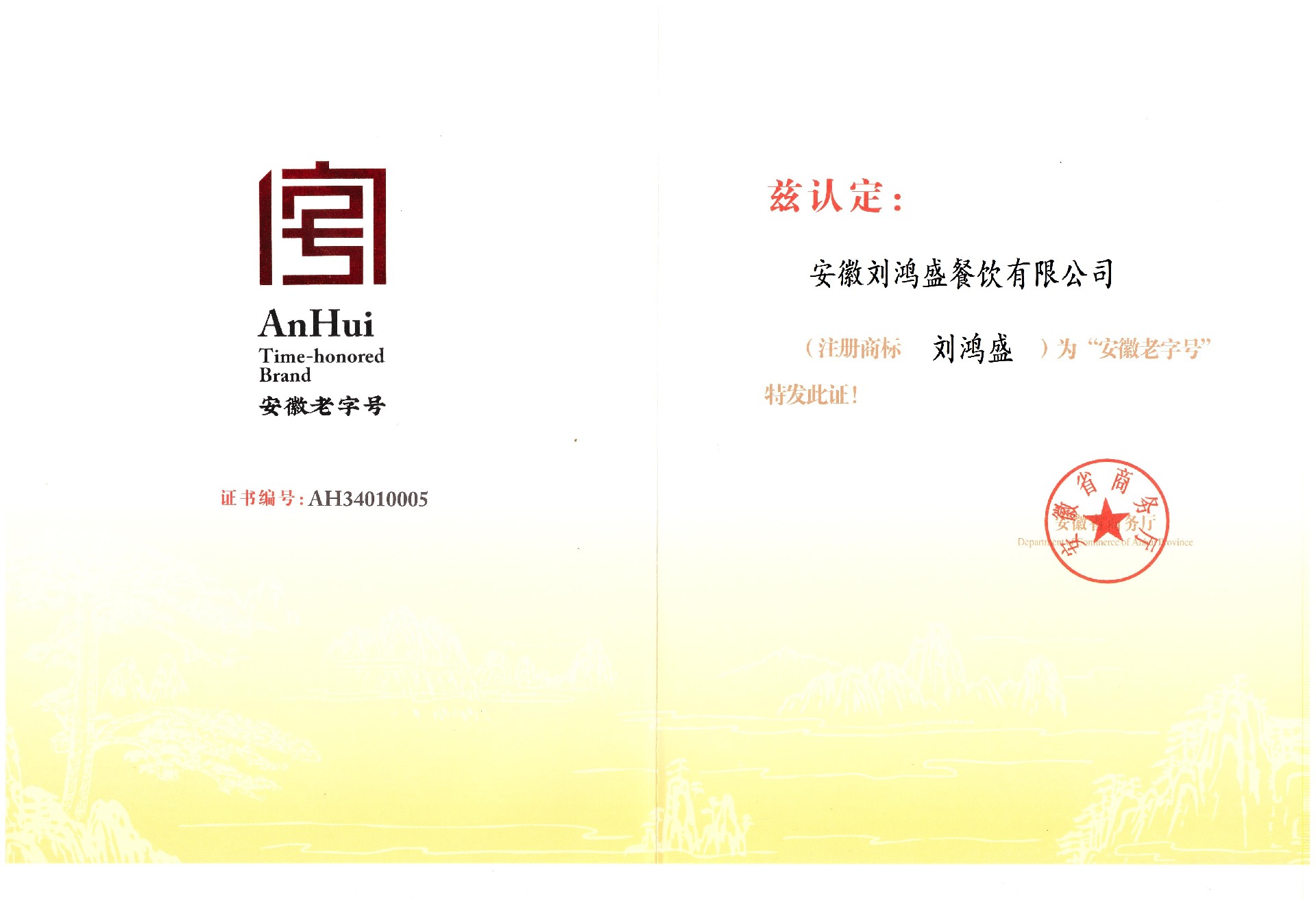 刘鸿盛于2024年2月1日再次经中华人民共和国商务部等五部门认定为“中华老字号”