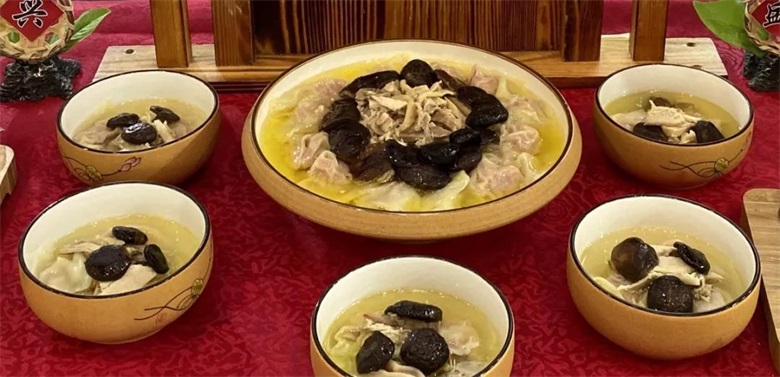 文博会现场,刘鸿盛的师傅们早早的开始准备制作小吃,比如冬菇鸡饺,说是“饺”,实际上是馄饨,过去老合肥都将馄饨称作饺子,鸡饺皮薄馅料鲜美,汤头醇厚。更有历史悠久的小花狮子头,它的花纹重重叠叠就像狮子头发蓬松的样子。吃起来香脆焦酥,略有咸味,是合肥的传统名小吃,除了这些还有味辣鲜香的肉盒饼、外酥馅香的庐阳酥、香软可口的黄团等等......